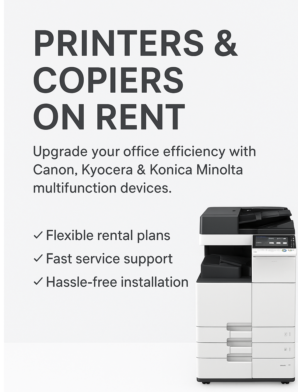 Printing That Keeps Your Office MovingPrinting That Keeps Your Office Moving Efficient office operations start with reliable printing. Our printer and copier rental solutions are built to support everyday business needs with consistency and professional service. Smooth printing, scanning & copying Flexible rental options Dependable technical support